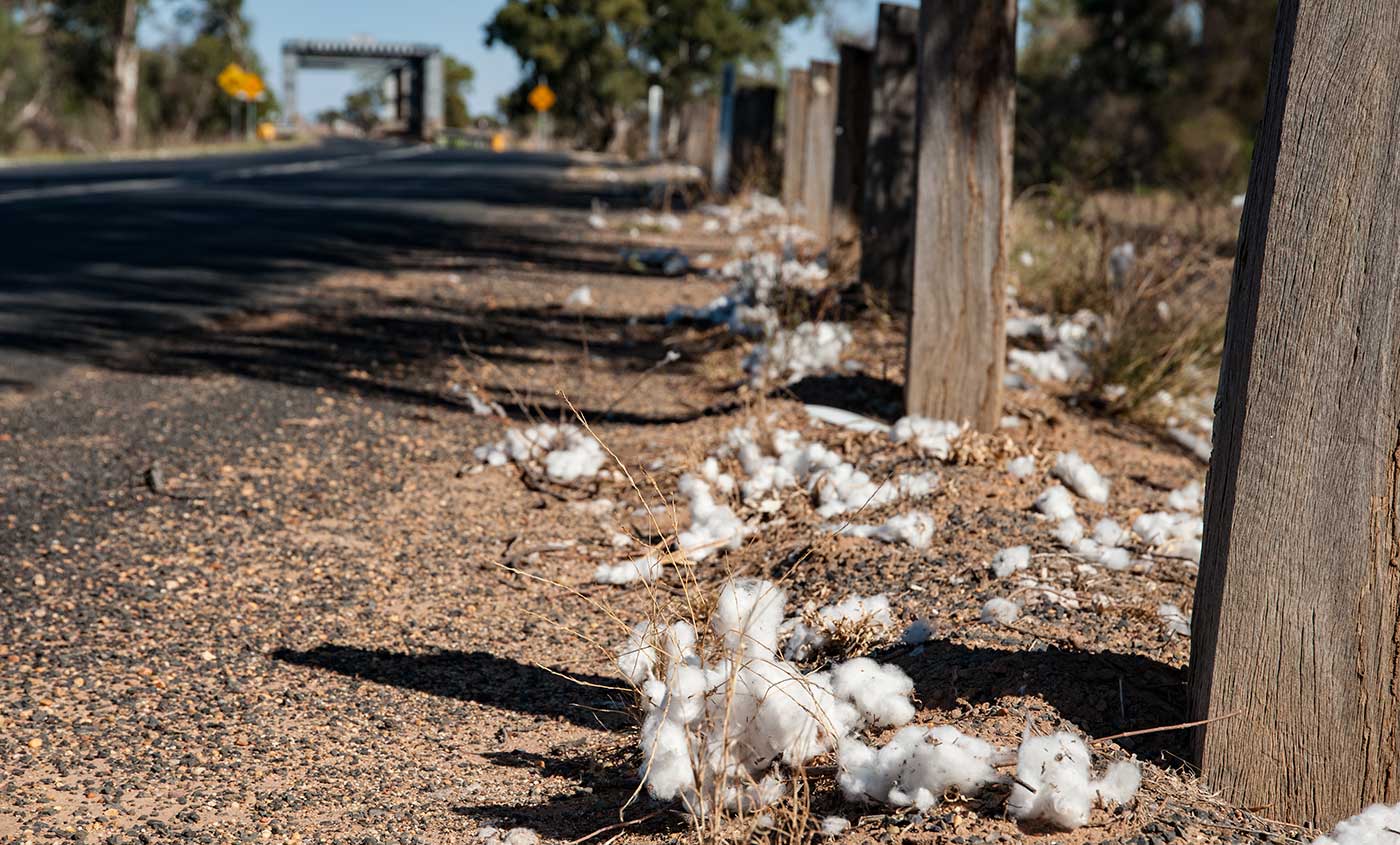 Driving along the road we noticed how much cotton has come loose on its transportation from farm to gin, I did ask if you could pick up all this cotton and take it to the gin to sell, but the answer is no. You must have a barcode to put on the bale to prove you had bought a license from Monsanto.